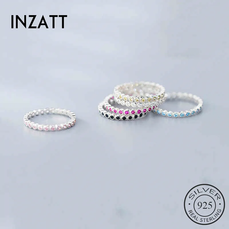 INZATT Настоящее серебро 925 пробы Циркон круглое кольцо для модных женщин вечерние на день рождения Изящные Ювелирные изделия минималистичные...