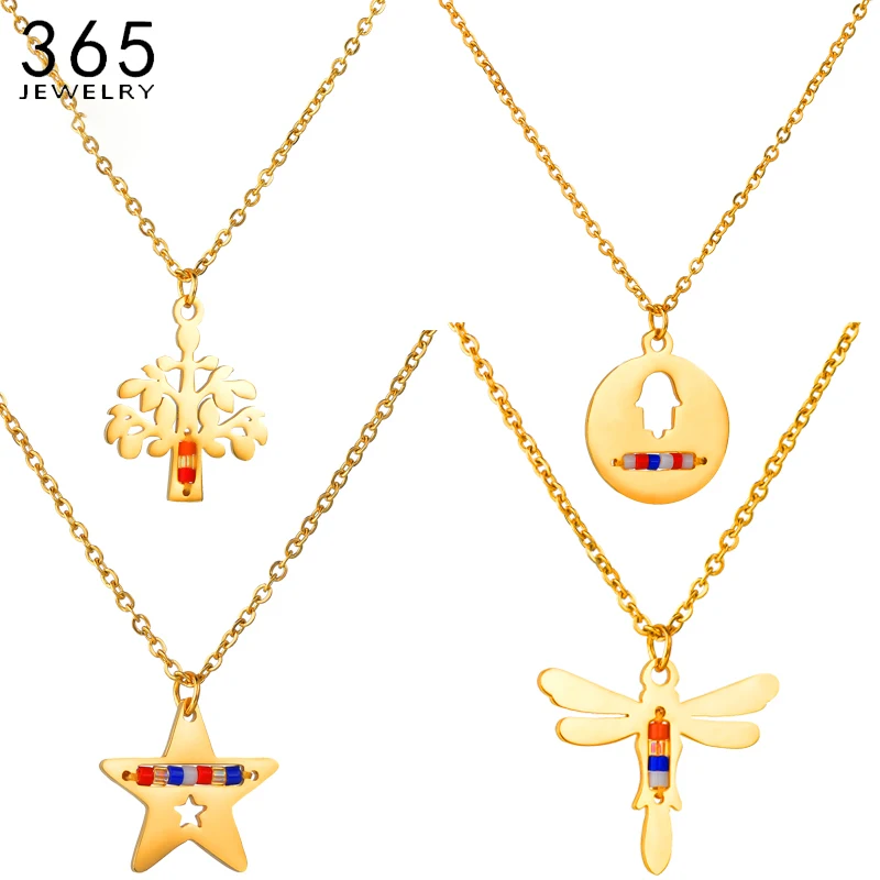 Ожерелье «Счастливое дерево», сердце, звезда, стрекоза, ожерелье с красочными бусинами из нержавеющей стали, удачи, амулет, ожерелье, оптова...