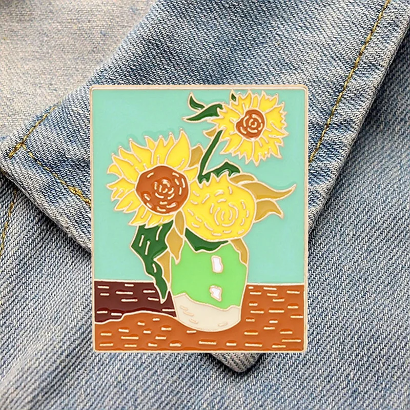 Брошь DZ999 с изображением Ван Гога, эмалированные булавки и броши с изображением подсолнуха для женщин, модная булавка для лацкана, рюкзака, с...