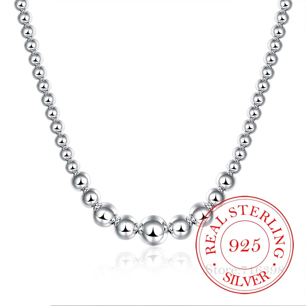 Real 925 Silver Exquisite Noble Luxury Gorgeous Charm Fashion Vary Chain Women Lady Beads Ball Necklace 18 Inches Silver Jewelry