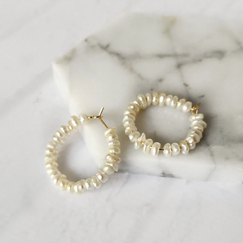 Женские серьги-кольца ручной работы с геометрическими бусинами и жемчугом, уникальные серьги из натурального пресноводного жемчуга, ювелирные украшения в стиле бохо