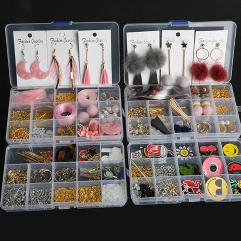 15 ячеек коробка кисточка/Подвески/деревянные бусины/помпоны мех серьги-шарики крючки застежки фурнитура коробка для DIY ручной работы серьг...