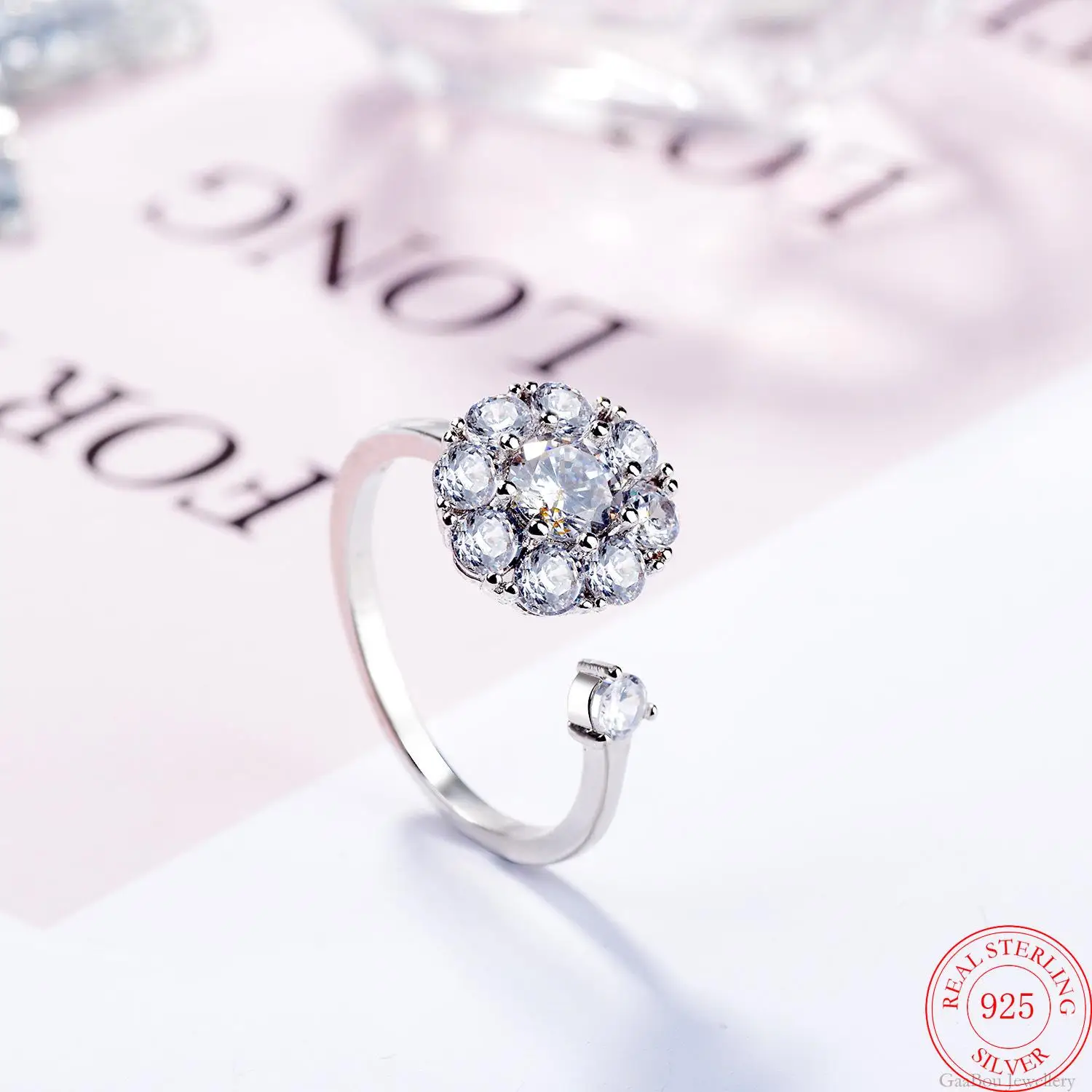 925 стерлингового серебра объемный Циркон Регулируемый открытые, кольца на палец для женщин, девочек-гостей на свадьбе Dorpshipping Anelli изысканные вечерние ювелирные изделия