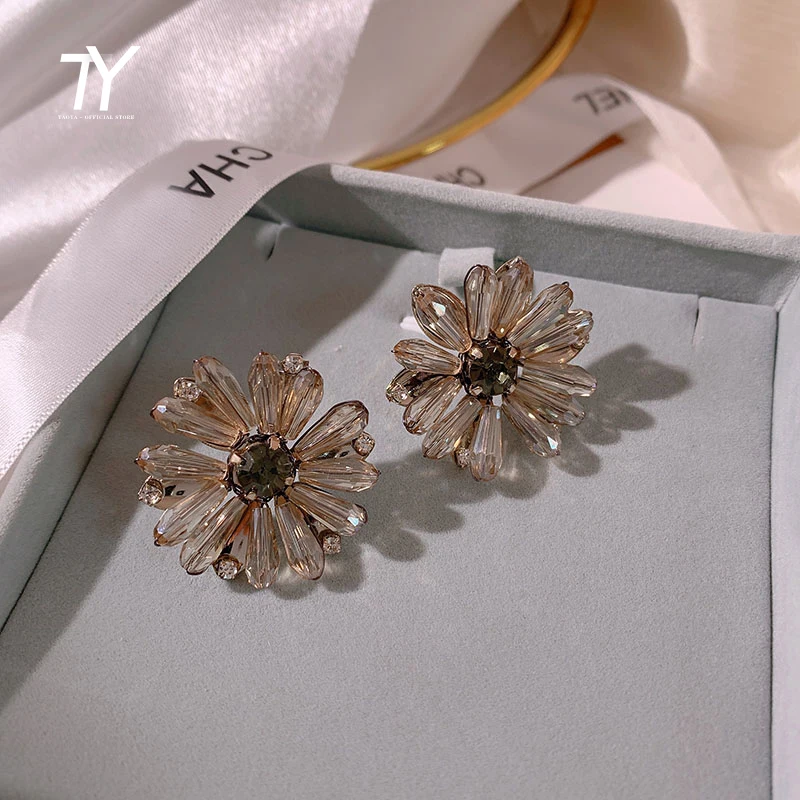 Романтический Элегантные светло-серого цвета с украшением в виде кристаллов цветок серьги для женщин 2021 модные корейские Драгоценности вечерние для девочек роскошные красивые серьги