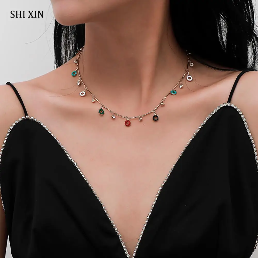 Женское Ожерелье-чокер SHIXIN Boho, разноцветное короткое колье с подвеской в виде маленького круга, модное корейское ожерелье, ювелирные изделия для девочек