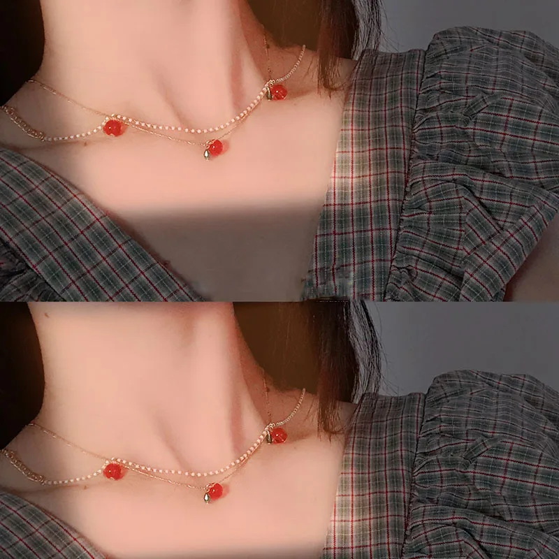 Винтажное прозрачное Вишневое ожерелье AOMU, тонкая цепь, бисер, двойное акриловое металлическое ожерелье, цепь для женщин