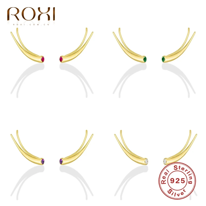 ROXI, украшенные разноцветными кристаллами; Рога, серьги со шпилькой, для женщин, ювелирные изделия минимализм Глянцевая пирсинг серьги 925 стерлингового серебра серьги
