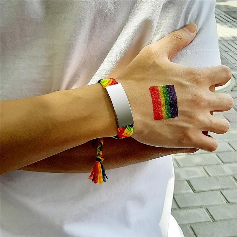 Плетеная цепочка из нержавеющей стали радужной расцветки с гравировкой на заказ, браслеты для женщин и мужчин, повседневные украшения на за...