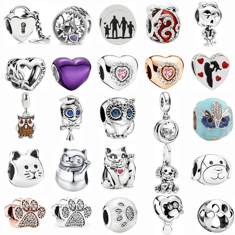 Одежда высшего качества серебро Цвет Lucky Cat с милой совой «Щенячий патруль», с принтом мамы сделай сам Семья бусины, подходят к оригиналу Pandora, браслет с шармами, ювелирные изделия для девушек