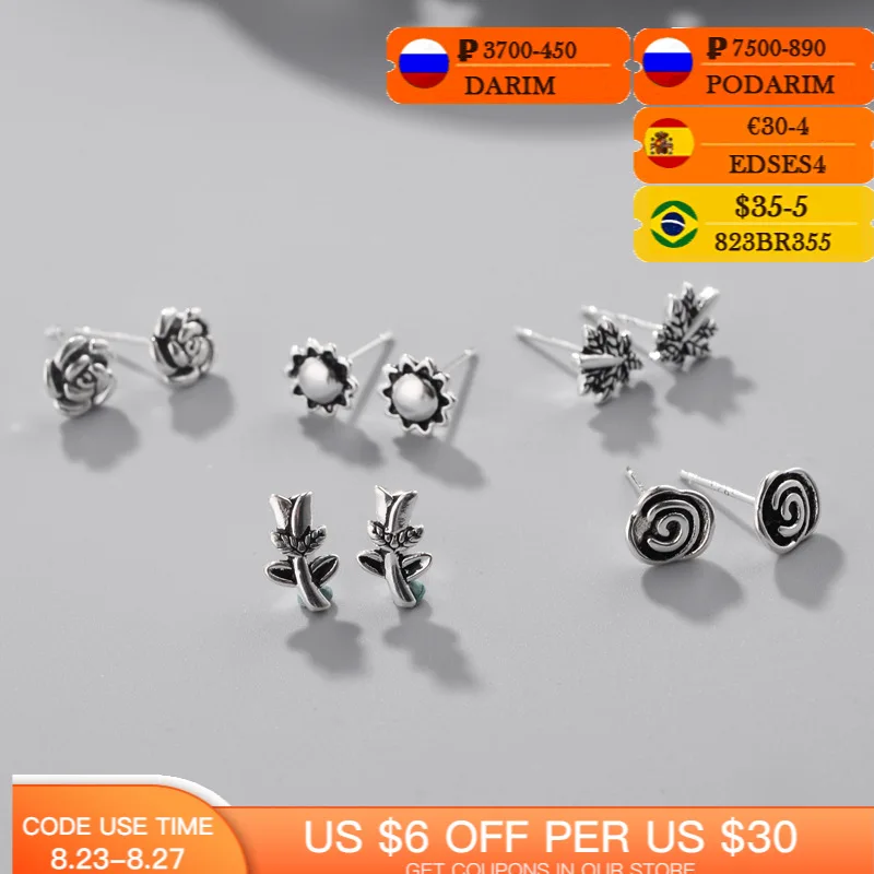 Модный минималистский натуральная 100% 925 стерлингового серебра мини маленький цветок животные, серьги со шпилькой, для женщин, студентов под...