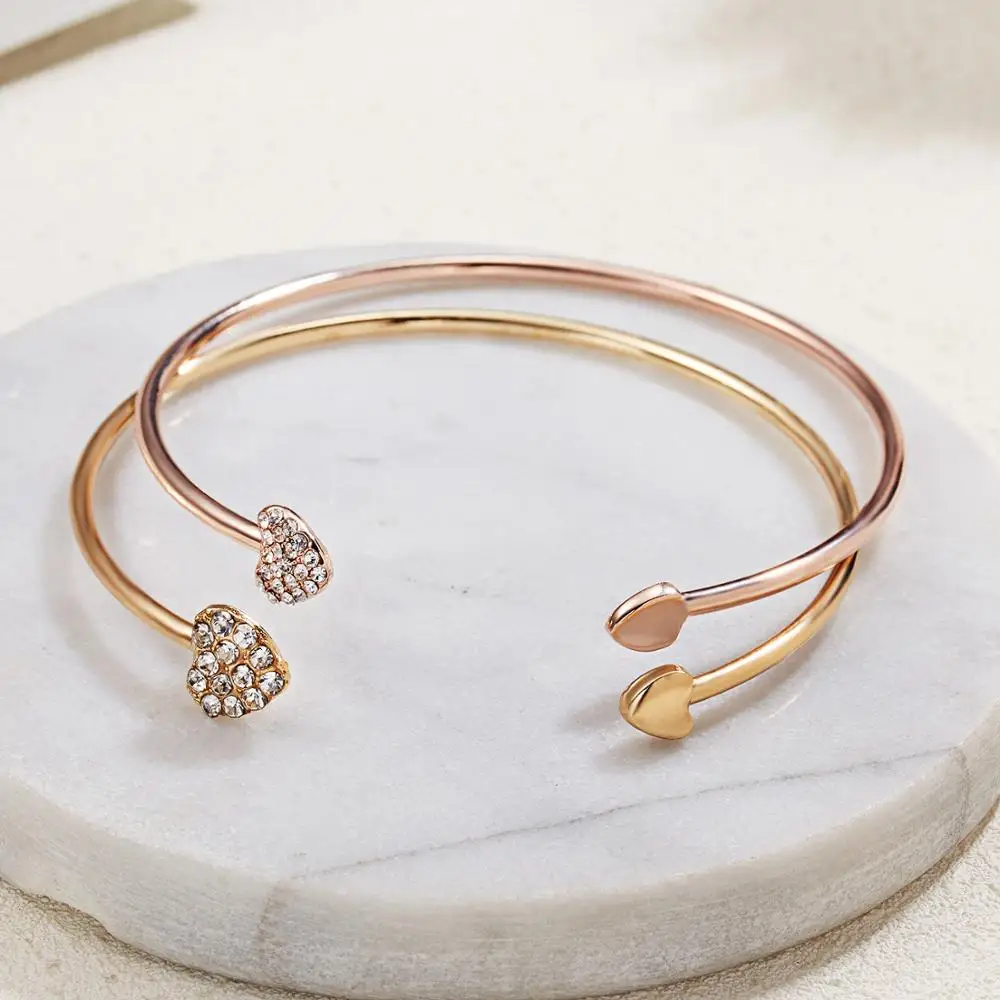 1 шт. золотой сплав розового золота простой Elegnat микро вставка персик в форме сердца манжета открытие регулируемый браслет и браслет модные ...
