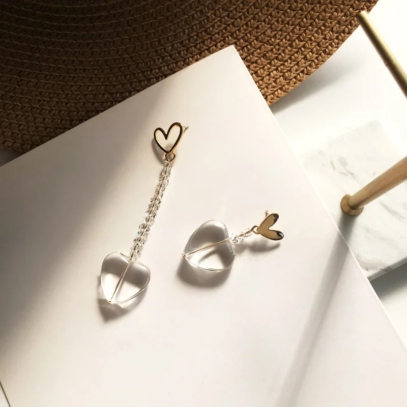 Новые ассиметричные серьги в форме сердца для женщин S925 модные корейские темпераментные серьги длинные Индивидуальные ювелирные серьги