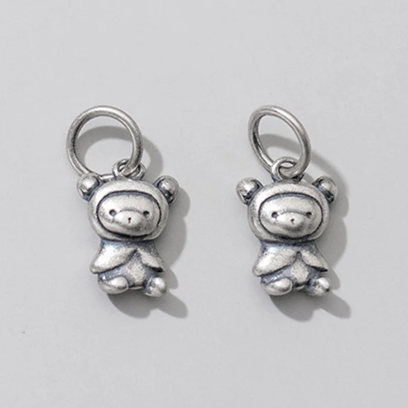 925 стерлингового серебра с милой круг медведь женские модные очаровательные полуфабрикатов матовый ручной работы из кожи S925 Серебряные Подвески DIY ювелирных изделий
