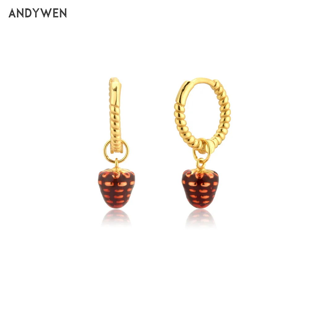 Женские серьги-подвески для пирсинга ANDYWEN, из серебра 925 пробы, с золотистой эмалью, с Лесным Орехом, Подарочные ювелирные украшения