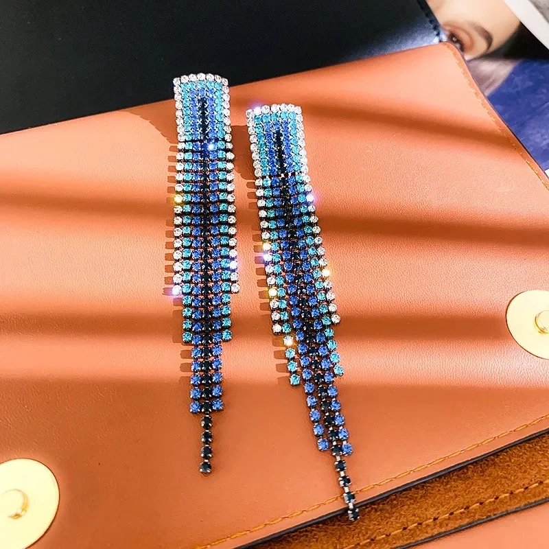 Корейские модные длинные висячие серьги со стразами и кисточками для женщин, свадебные Висячие Серьги Brincos, свадебные ювелирные изделия