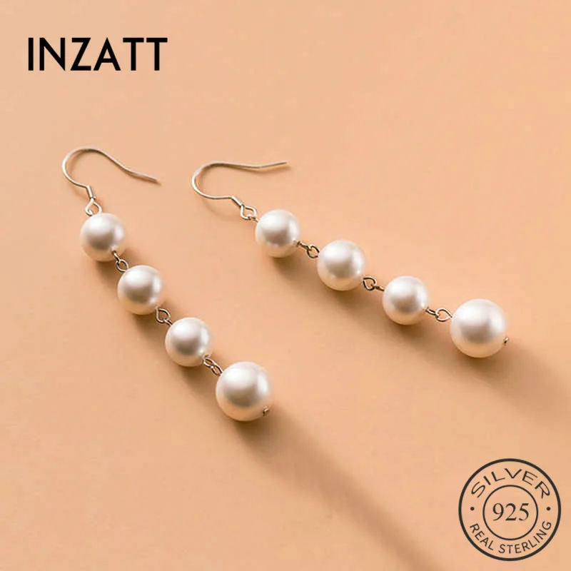 INZATT реальные 925 серьги из жемчуга и серебра цепь кисточкой серьги в виде капель для Модные женские модные туфли в лаконичном стиле, хорошее ювелирное изделие, милые аксессуары