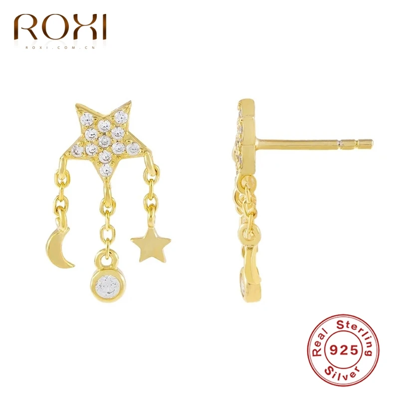 ROXI в богемном стиле белые кристаллы с изображением ясного звездного, серьги со шпилькой, для женщин, необычные серьги пирсинг асимметрия 925 стерлингового серебра ювелирные изделия