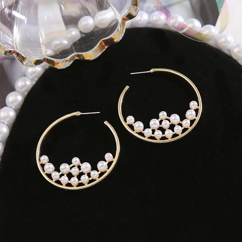 Женские винтажные серьги-кольца с жемчугом