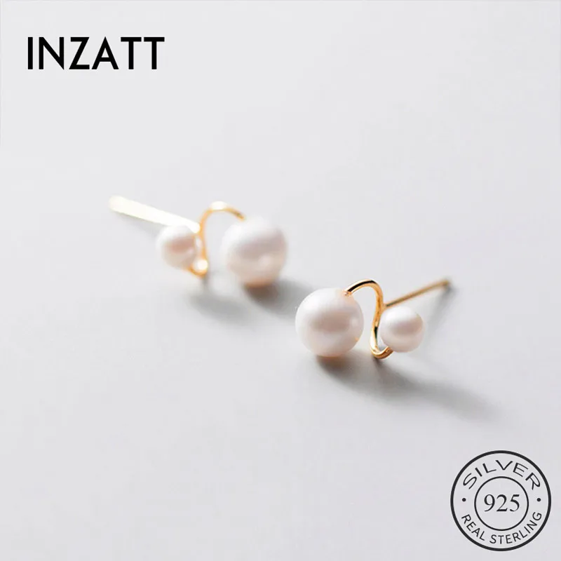 INZATT, Настоящее серебро 925 пробы, жемчужные спиральный гвоздик, серьги для модных женщин, вечерние, минималистичные ювелирные изделия, милые аксессуары, подарок
