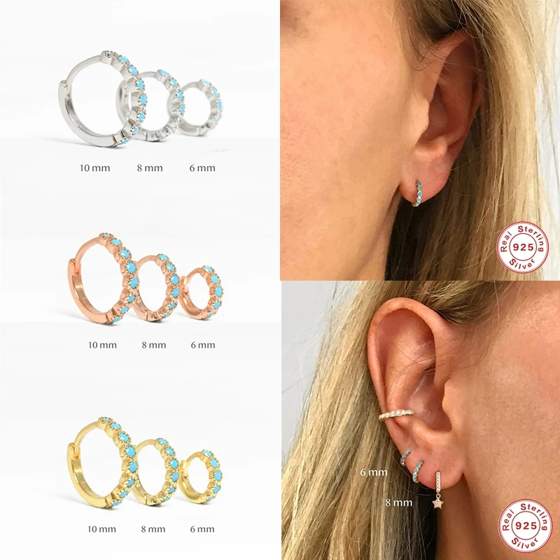 925 стерлингового серебра Huggies Pendientes Turquois пирсинг кольцо в виде капель с кристаллами в форме для женщин и девочек 2020 круглые серьги, драгоценности Подарки
