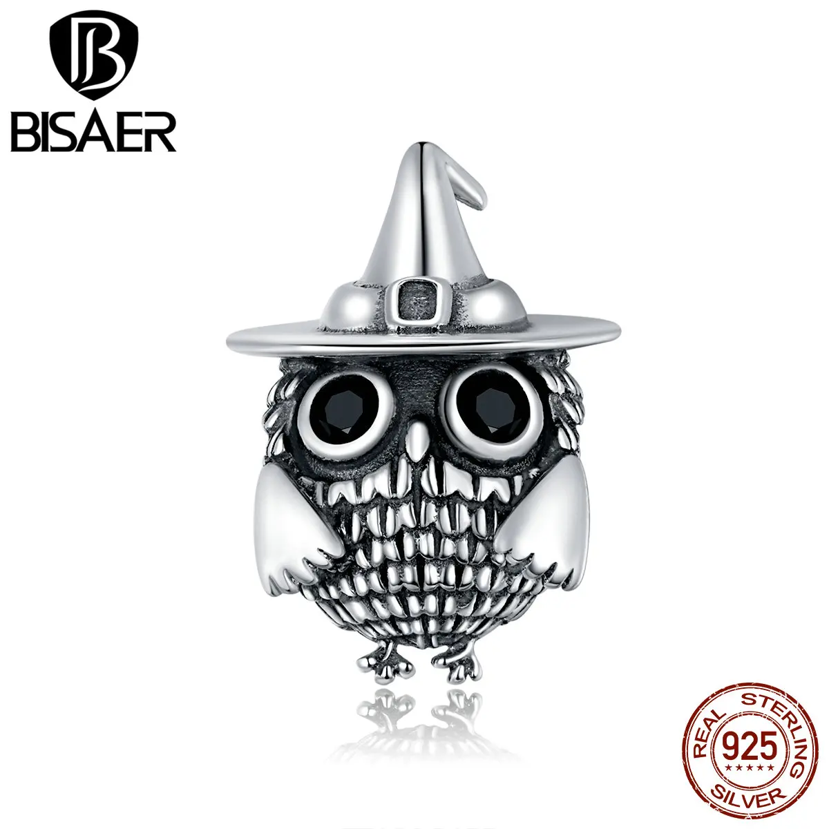 Подвески в виде совы для Хэллоуина BISAER из стерлингового серебра 925 пробы с подвеской в виде совы и бусинами в форме ночного мессенджера DIY Браслеты Ожерелье 2020 ювелирные изделия ECC1616