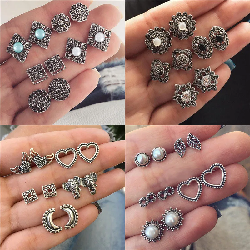 Серьги-гвоздики Женские винтажные геометрической формы с фианитами