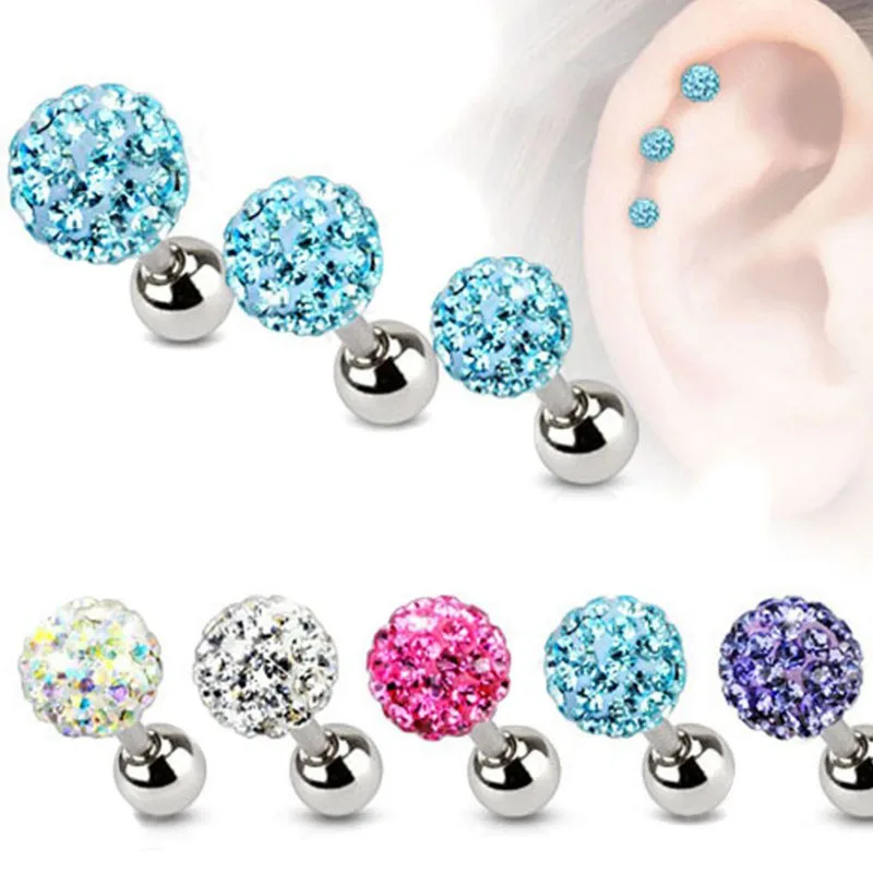 Женские серьги-гвоздики из нержавеющей стали, серьги-гвоздики в стиле панк с хрустальным шариком и Т-образным винтом, ювелирные изделия Для ...