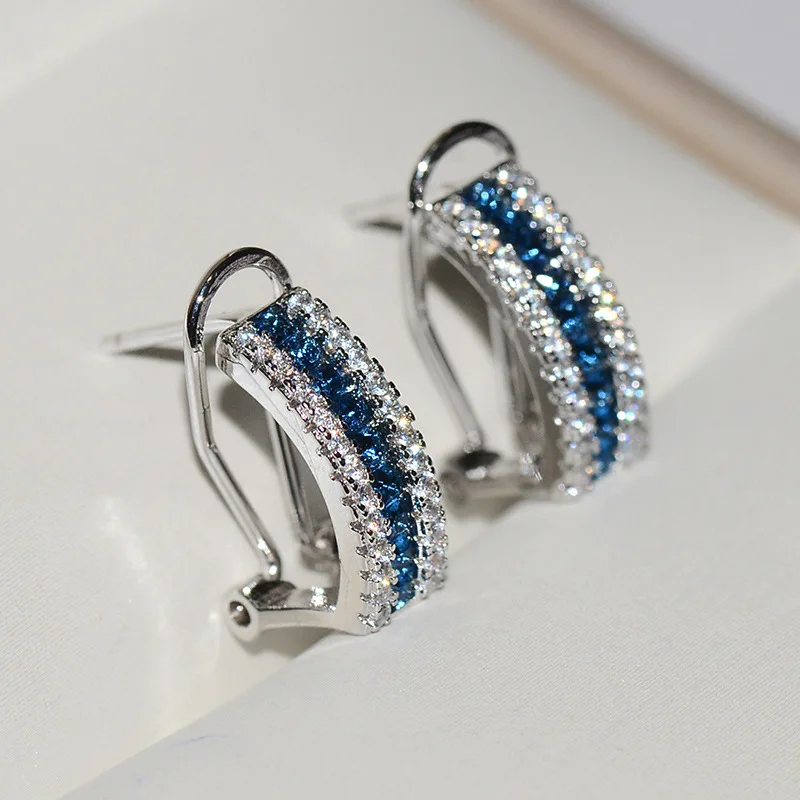 Серьги с цирконием кубической огранки ААА синего/белого цвета, простые серьги «Радуга» для женщин, ювелирные украшения в стиле бохо из стерлингового серебра 925 пробы
