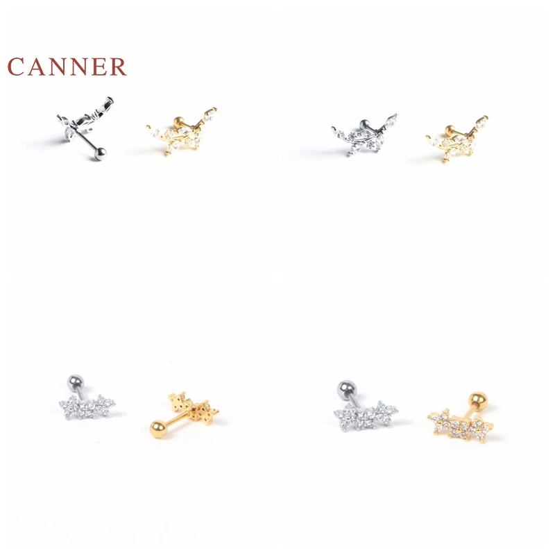 Женские серьги-гвоздики CANNER из настоящего 925 пробы и серебра, серьги-гвоздики в виде листьев конского глаза, ювелирные изделия из циркона