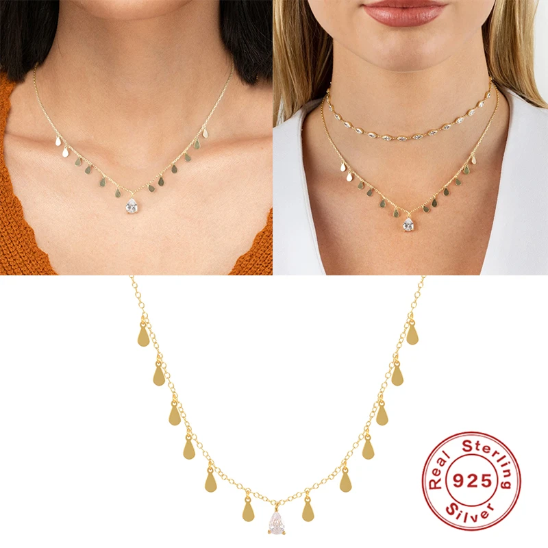 100% реальные S925 серебряное ожерелье с украшением в виде кристаллов с подвеской в виде капли воды, ожерелья для женщин, девушек, Colgante стильное массивное ожерелье Collares Mujer красивые ювелирные украшения