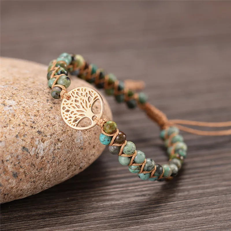 Натуральный камень подвеска Древо жизни браслеты из нержавеющей стали для женские туфли-лодочки на высоком каблуке ручной работы из бисер...