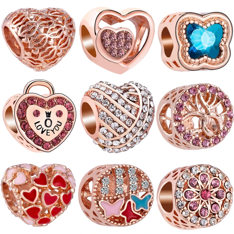 Роскошные бусины золотого цвета с кристаллами в форме сердца, подходят для оригинальных браслетов Pandora, эмалированные бусины с милыми бабочками для женщин, ювелирные изделия