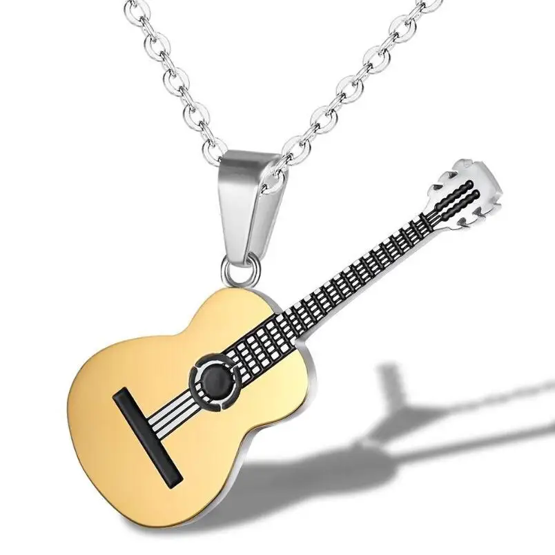 2020 Новый 316L нержавеющая сталь крутая гитара кулон для мужчин и женщин ювелирные изделия Хип-Хоп рок слайд Музыкальный Элемент цепи ожерелье Подарки