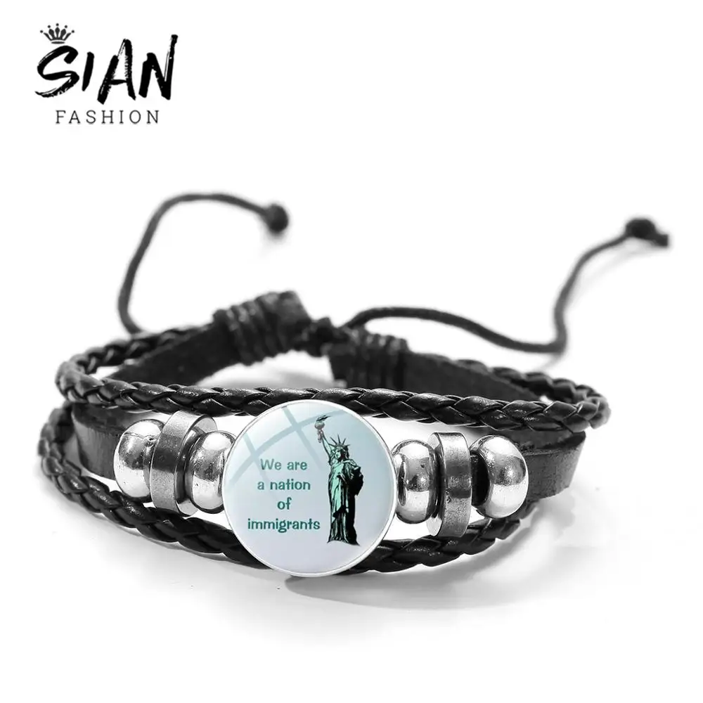 SIAN We-нация иммигрантов, винтажные кожаные браслеты, многослойные браслеты, браслеты в стиле панк, Braide, ювелирные изделия для мужчин и женщин