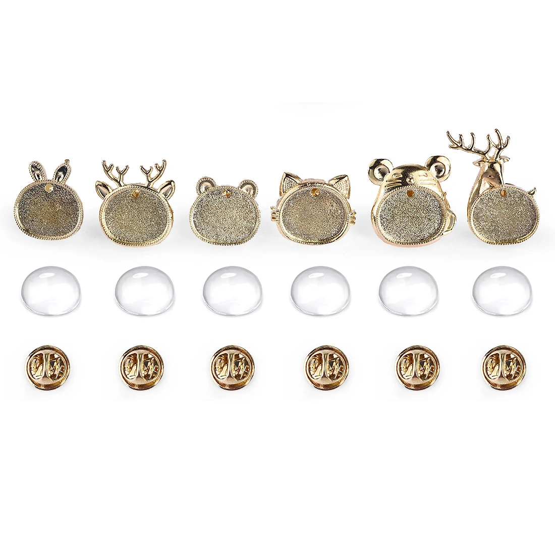 6 шт. базовые параметры брошки из сплава в форме животного с застежкой, Стеклянные Кабошоны, фурнитура для самостоятельного изготовления юв...