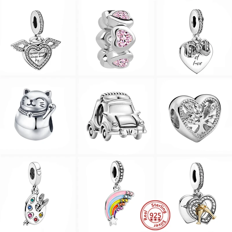 Новинка, разноцветная Радужная палитра из стерлингового серебра 925 пробы с подвеской в виде электрического автомобиля, подходящая для оригинального браслета Pandora, ювелирные изделия «сделай сам»