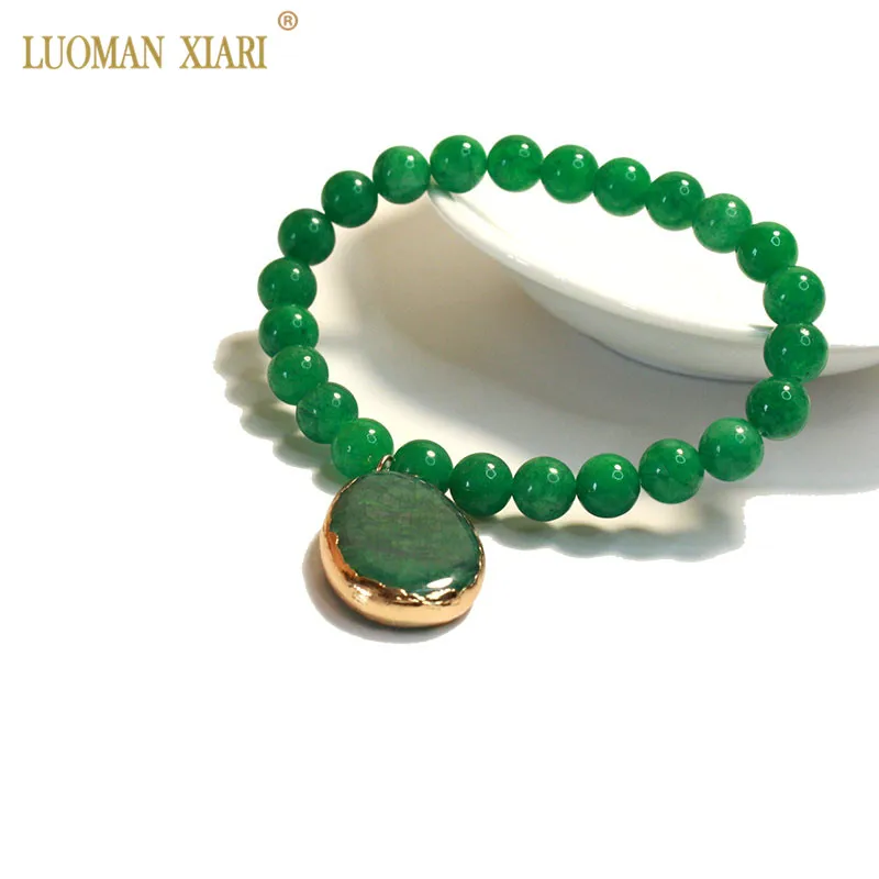 Браслет ручной работы с подвеской из натурального агата, браслет с подвеской из натурального камня, бусины из нефрита 8 мм, ювелирные издели...