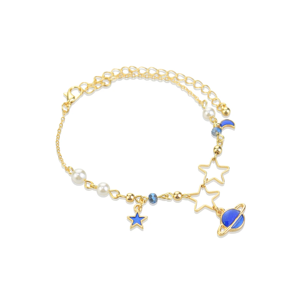 Новые модные золотые Цвет Подвески в виде Луны, звезды браслет планета бисер браслет с принтами вселенной, космоса, ювелирное изделие для женщин