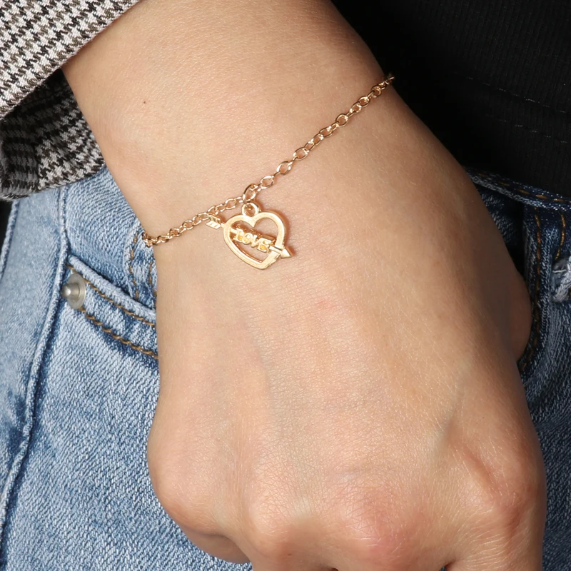 Кулоны любовь Браслеты Купидона Стрелка через сердце тонкая цепочка браслет подарок для вашей красивой девочки; 2021 Мода ювелирные изделия