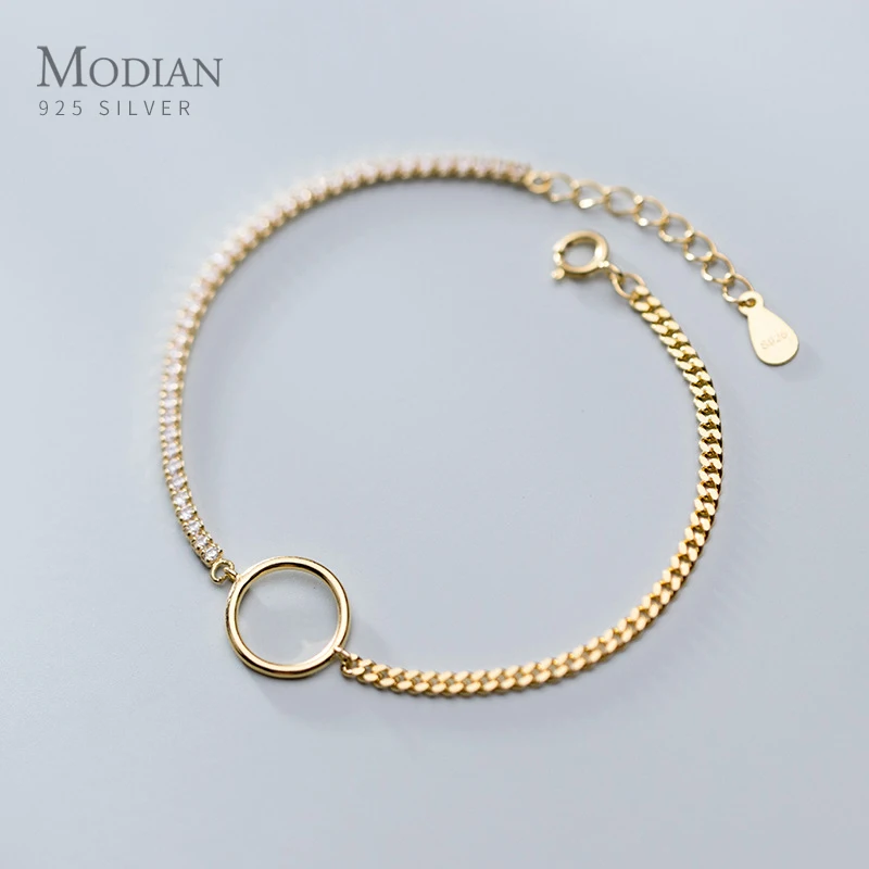 Modian сверкающий Циркон полый круглый роскошный браслет для женщин 925 Стерлинговое Серебро Геометрические звенья цепочка браслет Изысканные...