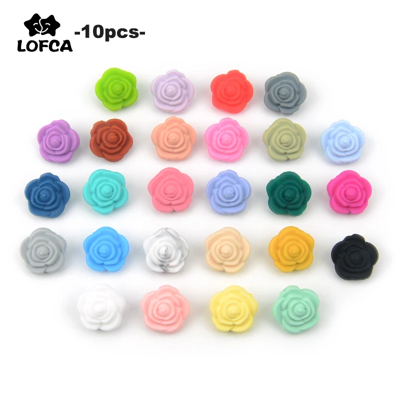 Силиконовые бусины 10 шт./лот, роза, детский Прорезыватель для зубов, двухсторонние силиконовые бусины, очаровательное устройство для прорезывания зубов