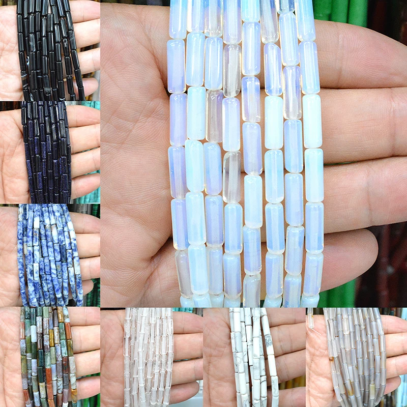 Маленькие бусины-трубки из натурального камня лазурит 4x13 мм, полудрагоценные камни, маленькие бусины из Малахита, ожерелье, сделай сам, брас...