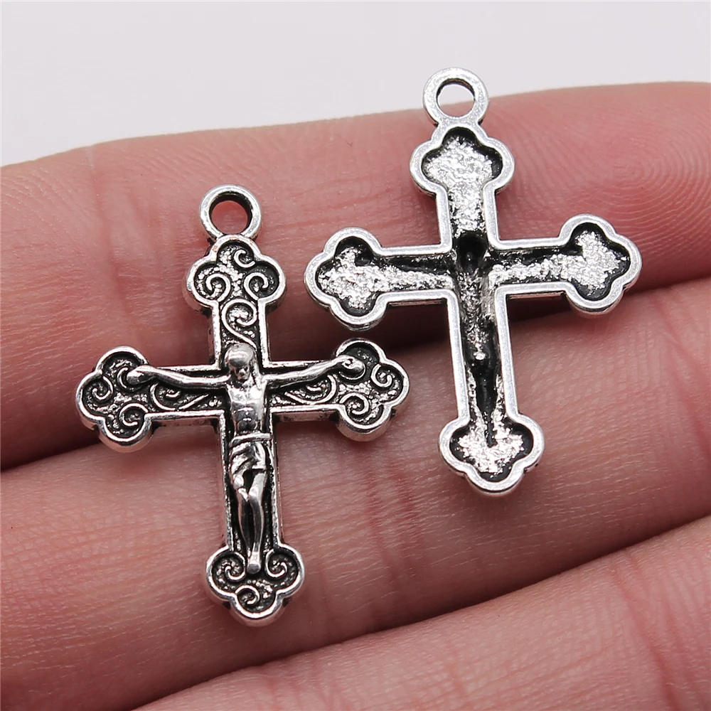 WYSIWYG 6 шт./лот подвеска в виде Креста Иисуса Diy металлические украшения античное серебро Цвет 22x29мм
