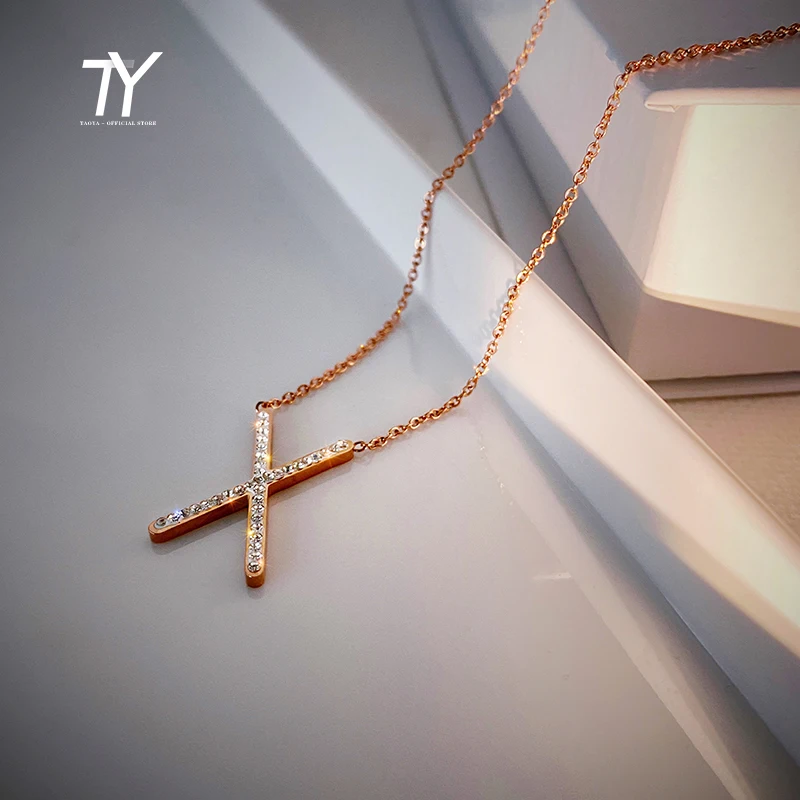 Готический X-подвеской в виде буквы из титановой стали розовое золото колье для женщин, модная новинка, ювелирное изделие, вечерние девушки сексуальные роскошные цепочка с кулоном