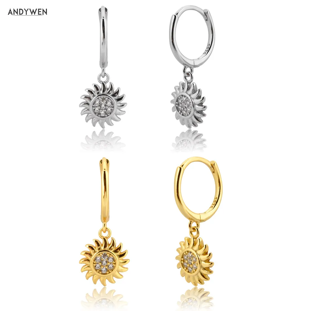 ANDYWEN 925 стерлингового серебра Подсолнух висячие серьги Циркон CZ Роскошные 2020 ювелирные украшения модные вечерние украшения пирсинг Pendiente