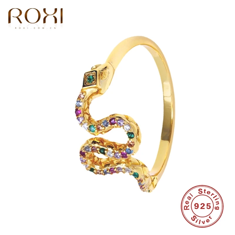 ROXI Винтаж разноцветные драгоценные камни со змеиным рисунком золотые кольца для Для женщин девочек 925 стерлинговые серебряные кольца, украшения Bague Anillos Mujer