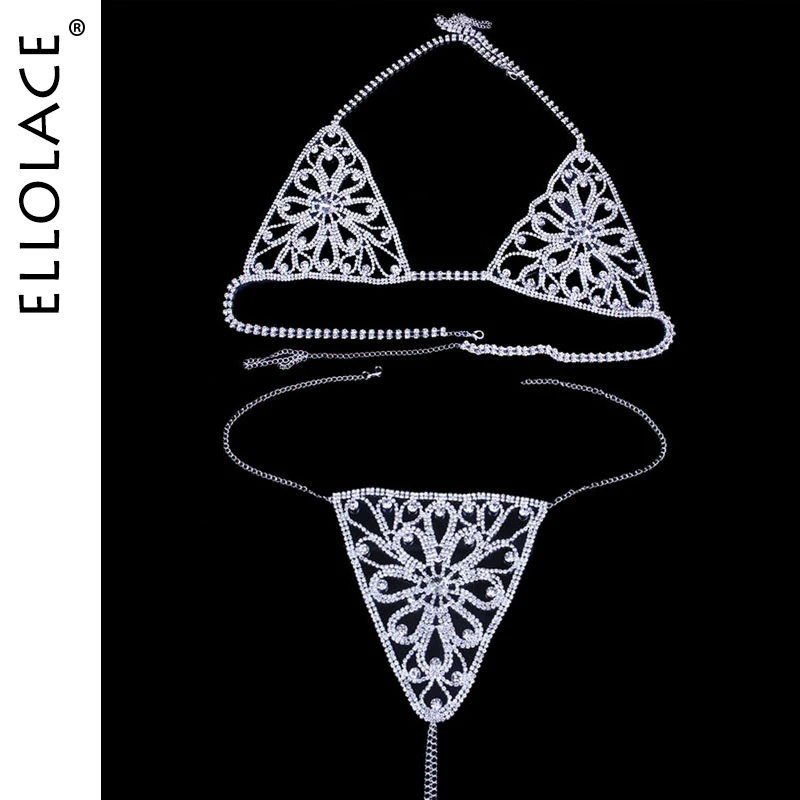 Женский комплект нижнего белья Ellolace, сексуальный комплект из бюстгальтера и стрингов, стразы