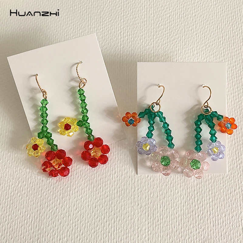HUANZHI 2020 Корея S925 красочные геометрические прозрачные кристаллы цветы длинные висячие серьги для женщин девушек Ювелирные изделия Подарки