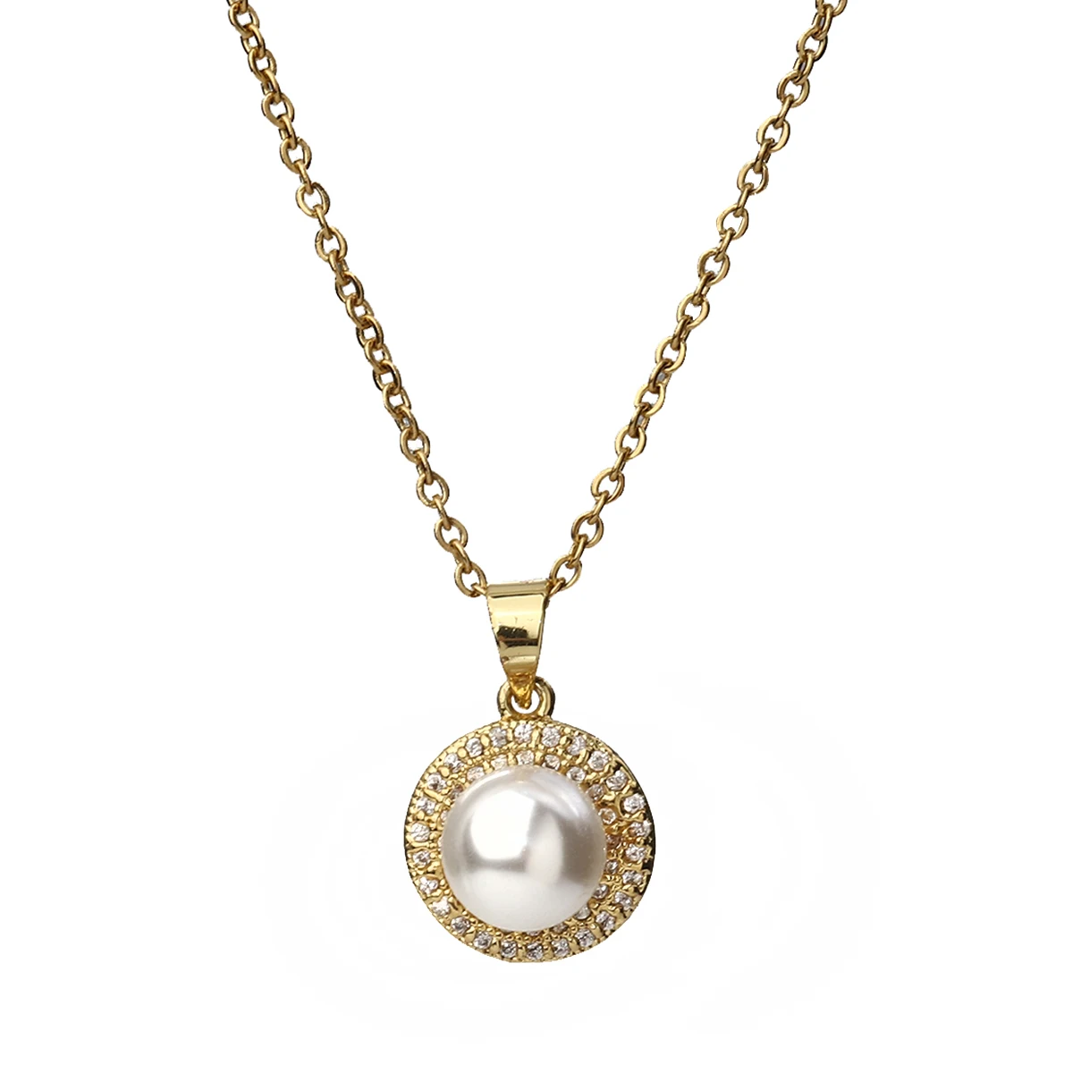 Ожерелье Doreen Box 304 из нержавеющей стали для женщин, колье золотого цвета, белое, круглое, прозрачное стразы, имитация жемчуга, длина 46,5 см, 1 шт.