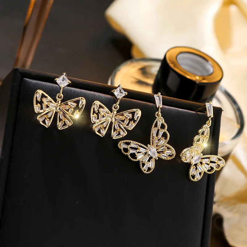 Новинка 2020, корейские темпераментные блестящие серьги-бабочки с кристаллами, модные милые металлические полые висячие серьги Джокер для по...